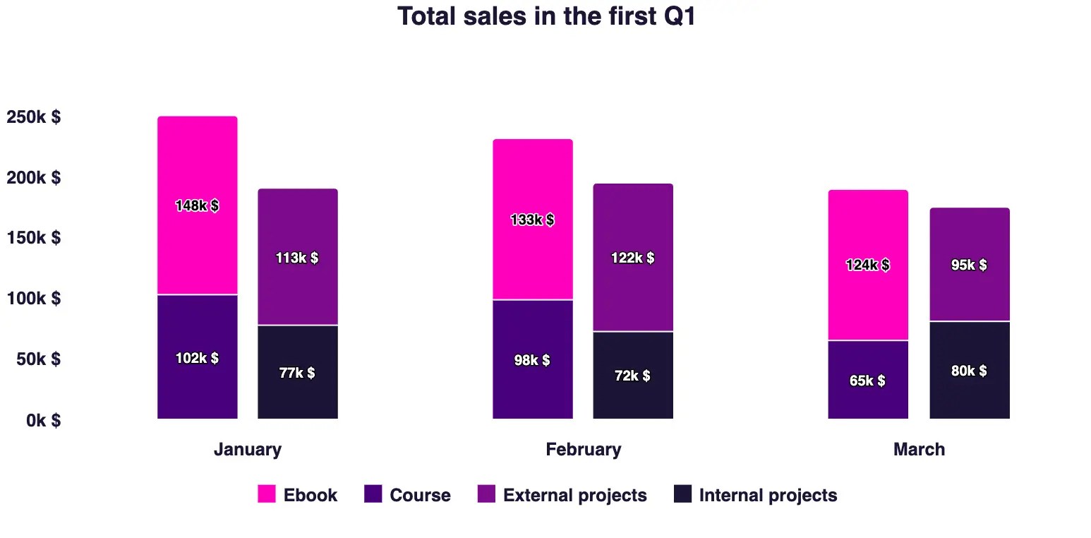Discover the differences between bar chart vs column chart, and how to choose the right one for your data visualization needs. This article will take a look at both column charts and bar charts. Our guide on bar chart vs column chart explores their features, strengths, and ideal use cases. Here, we'll discuss about them and when to use them.
