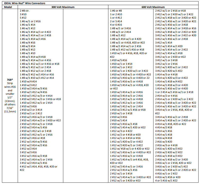 Ideal Wire Nut Chart