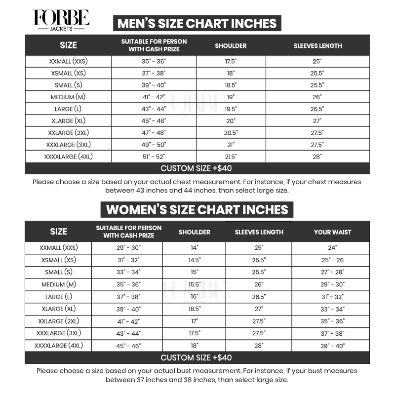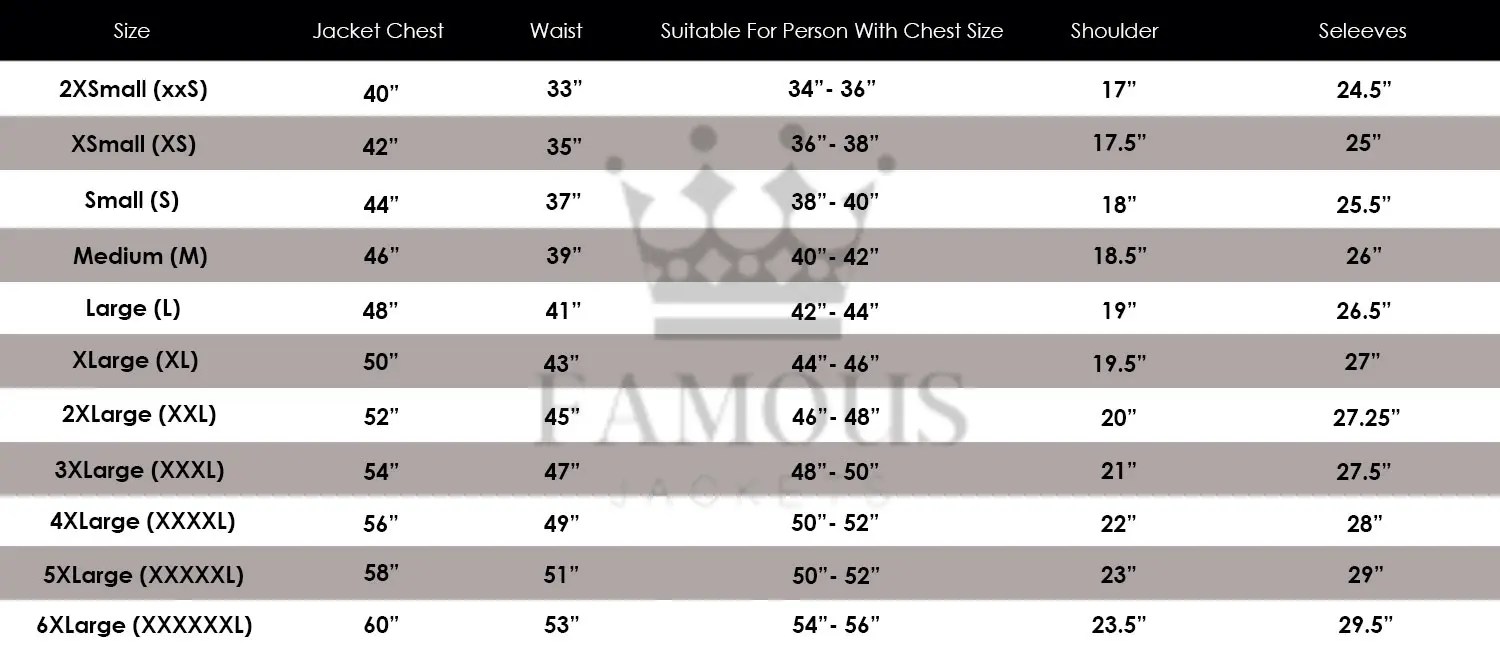 Jackets Size Chart