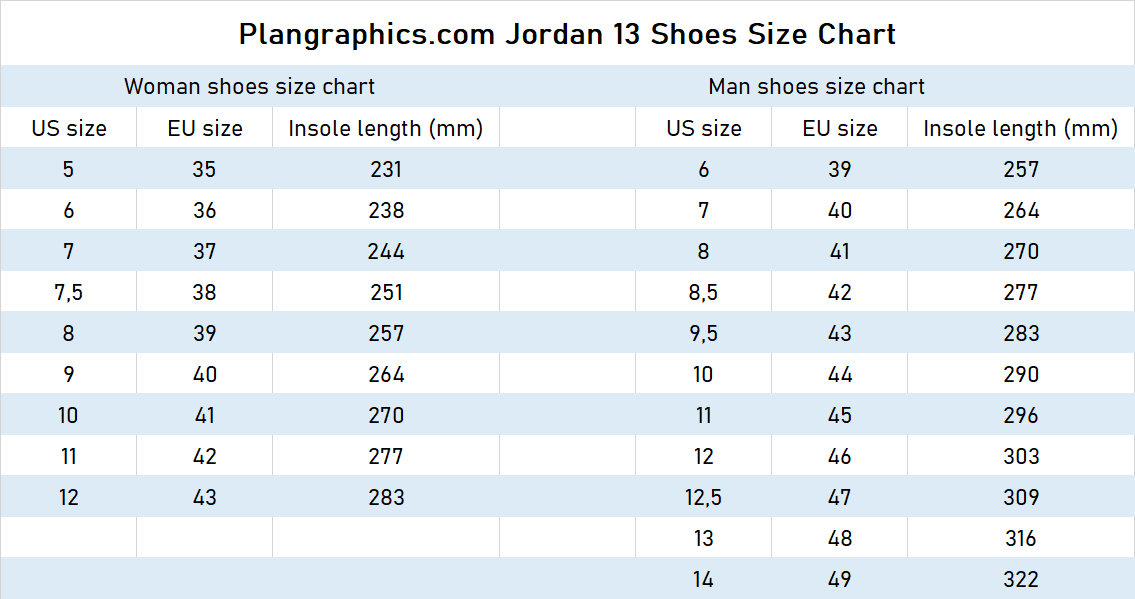 Jordan 13 Size Chart