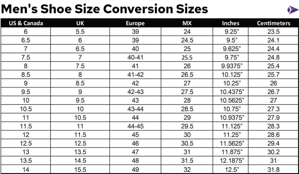 Mens Shoe Size Chart
