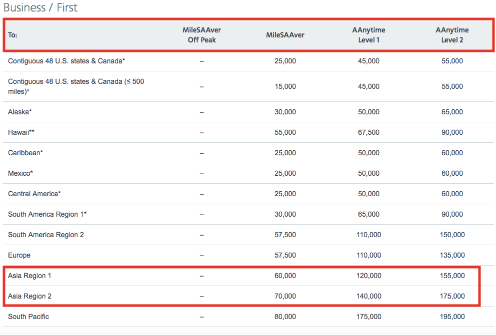 Mileage Chart American Airlines