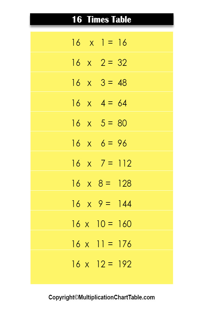 Multiplication Chart 16