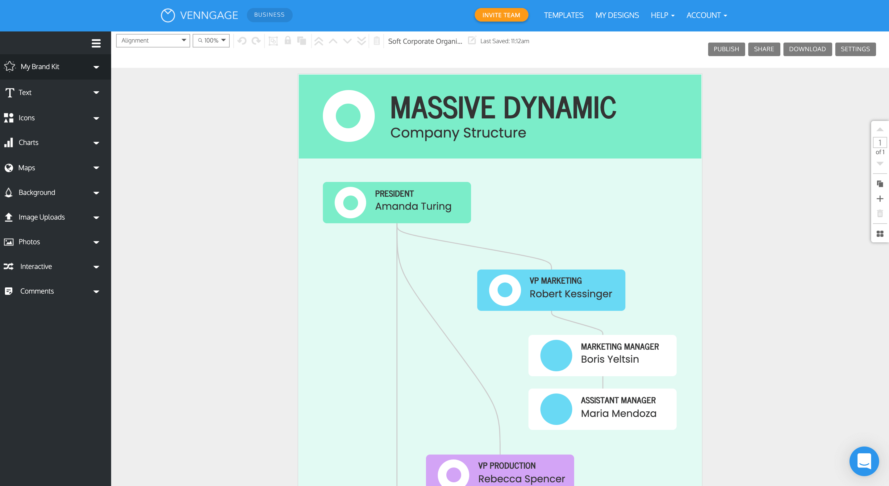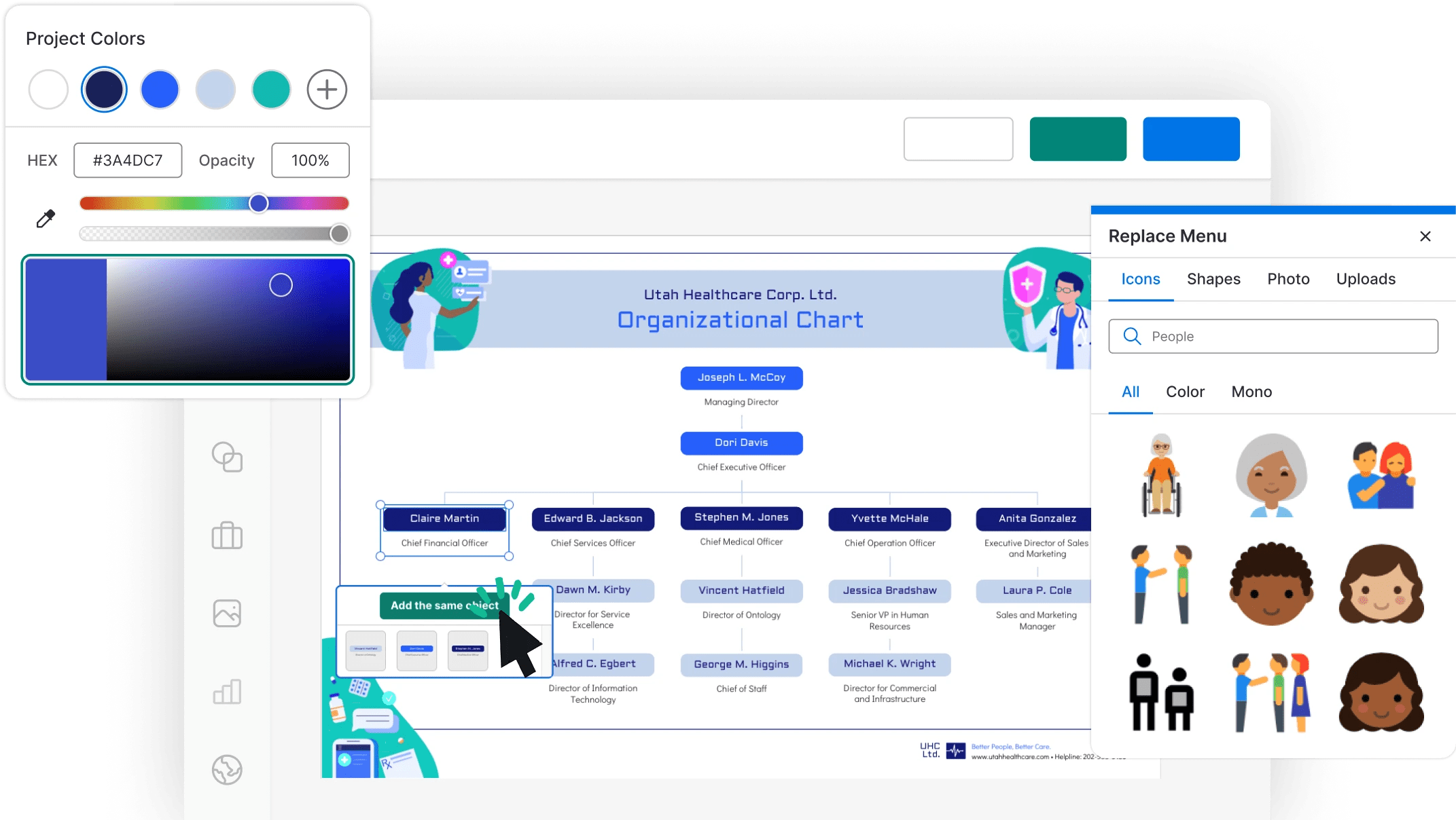 Organize your team with our powerful, yet easy to use organizational chart maker. Automatically build your chart in minutes with our data import or community build feature. No ad, no limited number of shape and diagram. Generate your organizational chart from data automatically, without any drawing at all. Use our free organizational chart maker to create beautiful org charts online.
