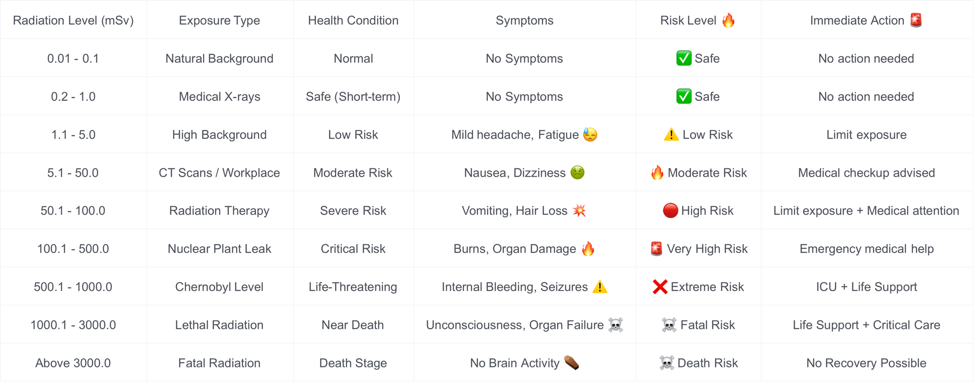 Radiation Dose Chart - We work to strengthen radiation protection of the public, patients and workers worldwide. The effective dose measured in sievert (sv) takes account of the amount of ionizing radiation energy. Who fact sheet on ionizing radiation, health effects and protective measures: À mesure que les usages des rayonnements ionisants se multiplient, les dangers qu’ils peuvent comporter pour la santé, s’ils ne sont pas correctement utilisés ou confinés, augmentent. Includes key facts, definition, sources, type of exposure, health effects, nuclear emergencies, who response. Natural radiation comes from many naturally occurring radioactive materials found in soil,.