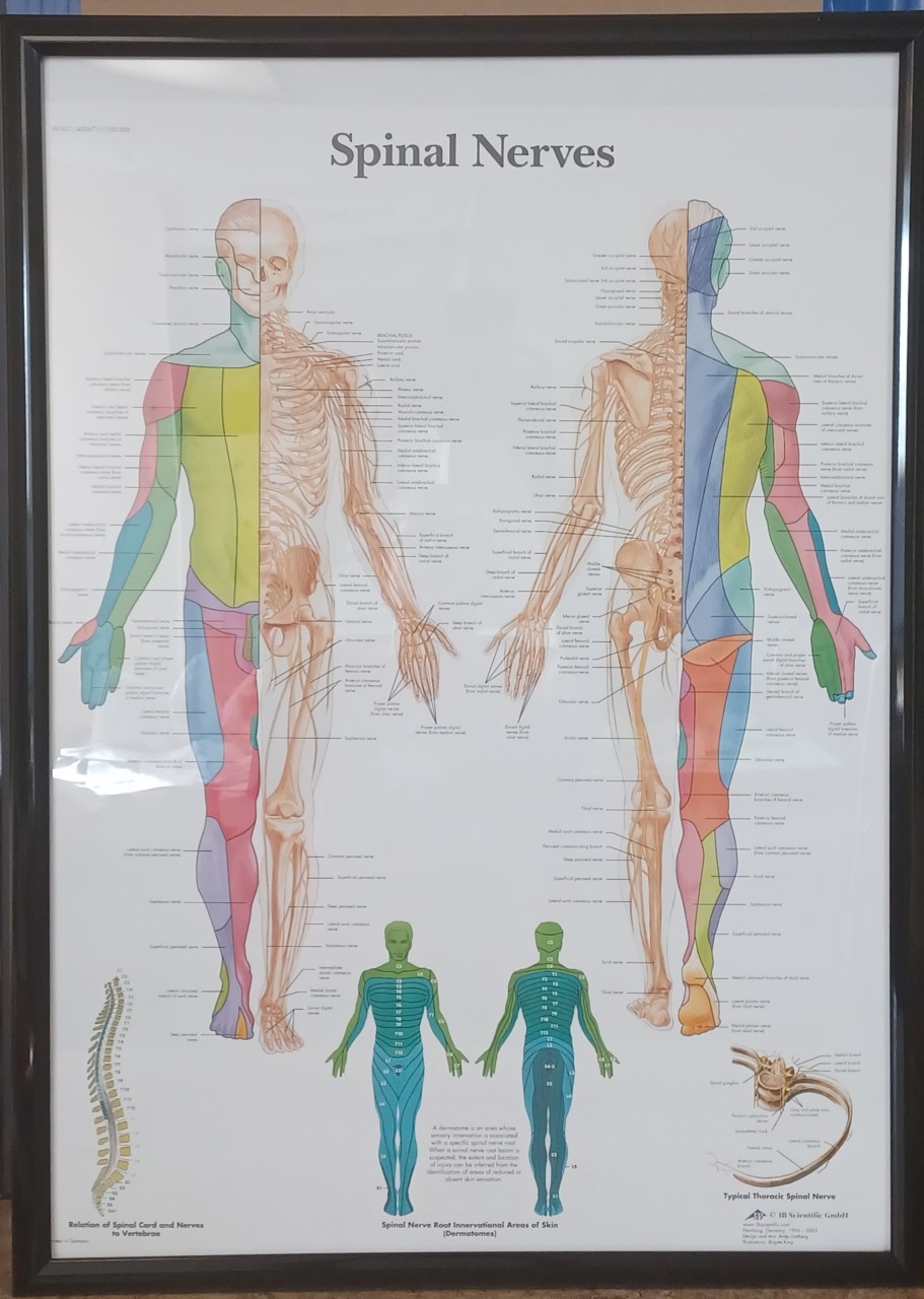 Spinal Chart With Nerves - The center of the spinal cord is hollow and contains a structure called the central canal, which contains cerebrospinal fluid. A spinal cord stimulator is an implanted device that sends low levels of electricity directly into the spinal cord to relieve pain. This can cause pain, numbness, and other issues. It causes symptoms like back or neck pain and tingling in your arms or legs. Learning about spinal anatomy helps to understand specific back pain conditions or symptoms. Spinal bones are stacked in a column from the skull to the tailbone.