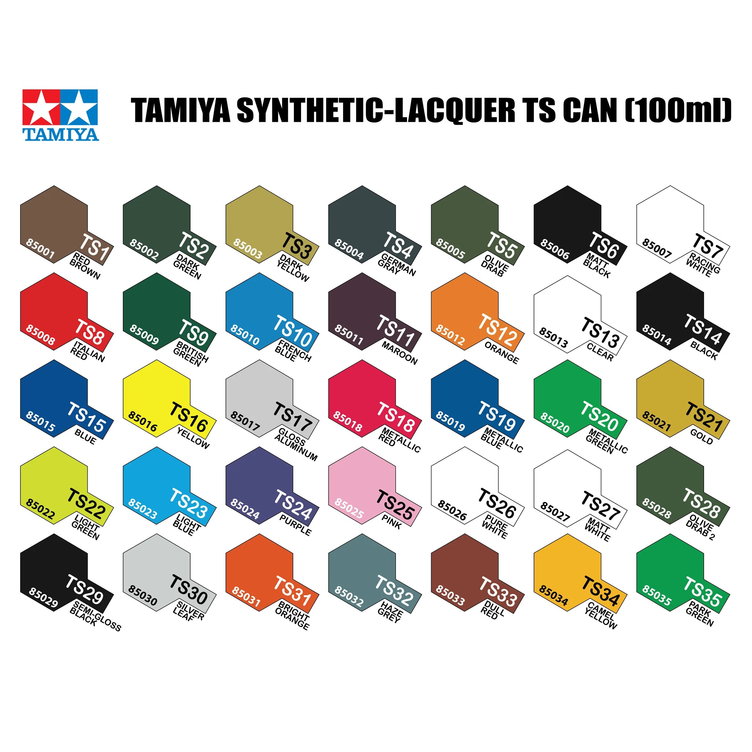 Here is a picture of the paint chips along with the part number and color designator. Click for a larger view of the paint chips. Convert these colors to testors model master, humbrol, fs595, vallejo, xtracolor, revell using the ultimate model paint. Tamiya spray paint guide with ts lacquer paints for model surfaces. Color future 2015 tamiya america, inc.
