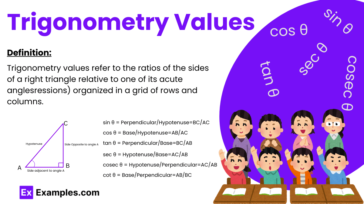 Trigonometry Chart Of Values - The word trigonometry comes from the latin derivative of. The right angle is shown by the. There are six functions commonly used in trigonometry: Trigonometry (named based on a greek word that loosely translates to measurement of triangles) is a branch of mathematics that studies the relationships between the sides and angles of triangles. Trigonometry helps us find angles and distances, is used a lot in science, engineering, video games, and more! The ratios used to study this relationship are called.