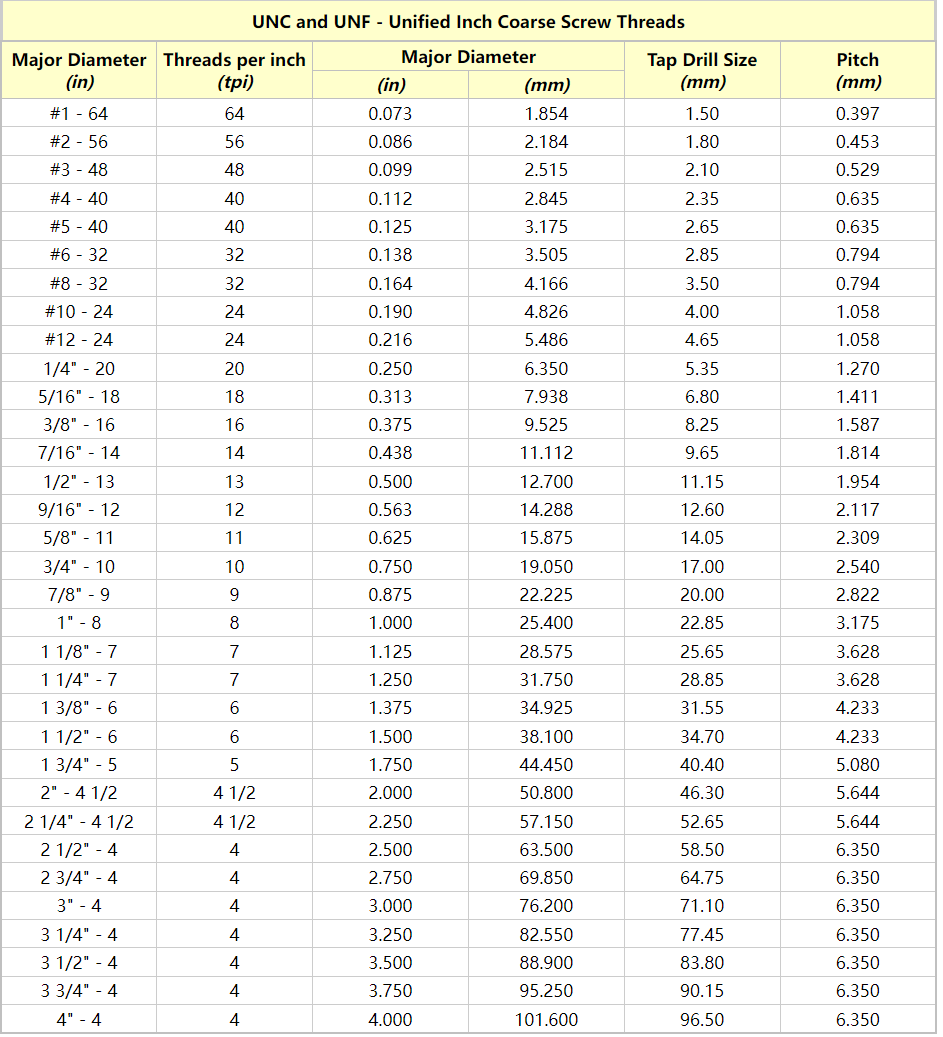 Unc Thread Chart